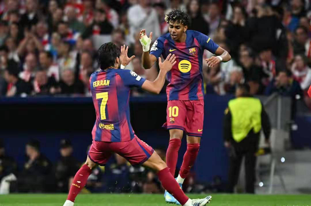 回到比赛刚开始的几分钟,巴萨给人一种破釜沉舟之势的印象。在必须净胜至少两球的压力下,他们毫不保留。仅四分钟,小将亚马尔就以一记极具威胁的射门撕开了马竞的防线,为球队打响了逆转的战斗号角。随后,在第24分钟,费兰·托雷斯的进球成功扳平总比分。那段时间内,巴萨众将士全力以赴,无论是逼抢还是冲刺都全然投入,在马竞的防守体系中不断打开缺口,展现出不屈的斗志。