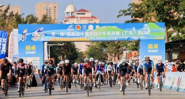 12月28日,2025“一带一路”国家驻华使节自行车系列赛(阳江站)在海陵岛螺洲滨海公园鸣枪。当天,来自40个国家的110位驻华领事、国际留学生与众多骑友同场飞驰。