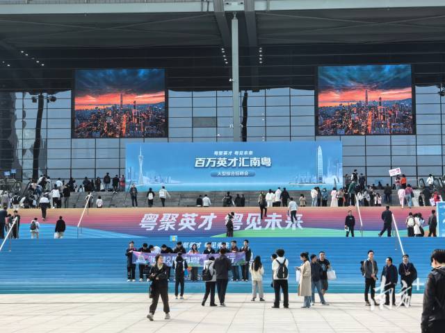12月27日上午,深圳会展中心内人声鼎沸,“百万英才汇南粤”大型综合招聘会的巨型蓝色背景板下人流如织,空气中交织着期待与机遇的气息。