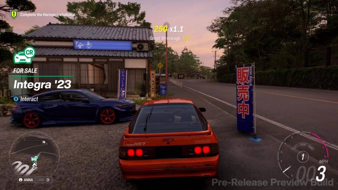 关于前者,玩家们大可不必担心——因为,无论是从目前官方公布的正式版游戏首发车单,还是这次试玩版中我实机可以购买的车辆品牌来看,本作中日系车的地位,绝对会是系列之最。而在车辆驾驶手感的上,我个人感觉这次试玩版中几款初始车型的默认都还不错,尤其是在本作地图多急弯的情况下,即便不对这些日产车做任何改装,我感觉都能比前作更容易漂起来。顺带一提,这次《极限竞速:地平线》在第一人称视角下,终于重做了驾驶动画——现在,车手打方向盘的角度更大了,甚至还会有交替手的动作出现,驾驶代入感得到了显著提升。
