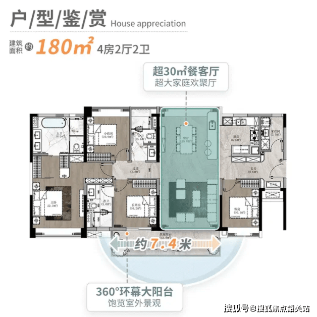 在户型设计上,珠江天郦推出了129㎡、140㎡和180㎡三种四房户型,全面适配不同改善家庭的居住需求。129㎡户型主打LDK一体化设计,客厅、餐厅、厨房连通,空间开阔大气,南向阳台采光极佳,主卧带独立卫浴和飘窗,三个次卧面积适中,适合三代同堂居住。140㎡户型则采用横厅设计,客厅面宽达7.7米,搭配270°环幕景观阳台,视野开阔,动静分区明确,适合对空间尺度有更高要求的家庭。180㎡户型更是采用了双主套设计,两个主卧均带独立卫浴和步入式衣帽间,私密性极佳,还专门设置了家政区和多功能房,可根据需求灵活改造,空间利用率高达86%左右。