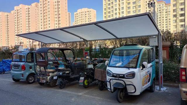 此次新增的充电车棚采用钢架结构搭配防雨防晒顶棚,坚固耐用、美观大方,插座间距合理,可同时满足电动自行车、三轮车等不同车型的充电需求。车棚均配备智能扫码充电系统,操作简单便捷,还有远程控制、过载保护、充满自停等功能。